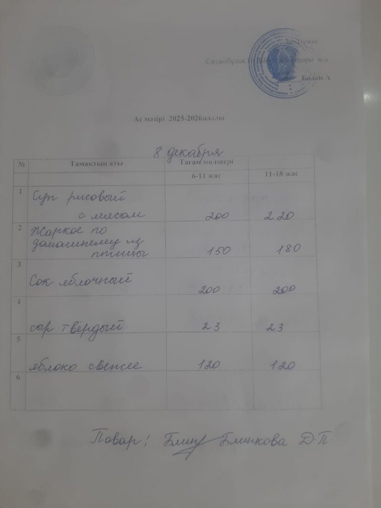 Меню на 08.12.2025