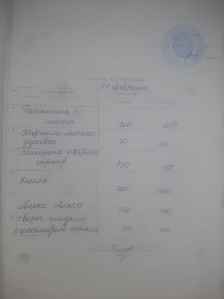 Меню на 11.02.2026