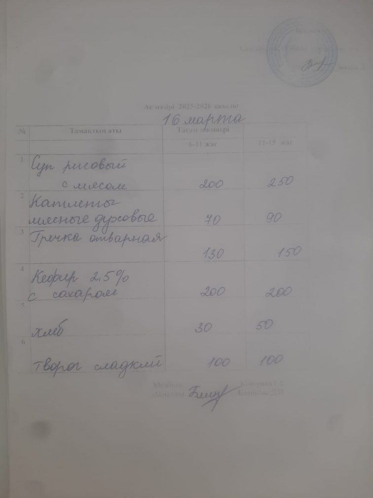 Меню на 16.03.2026