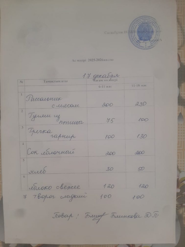 Меню на 17.12.2025
