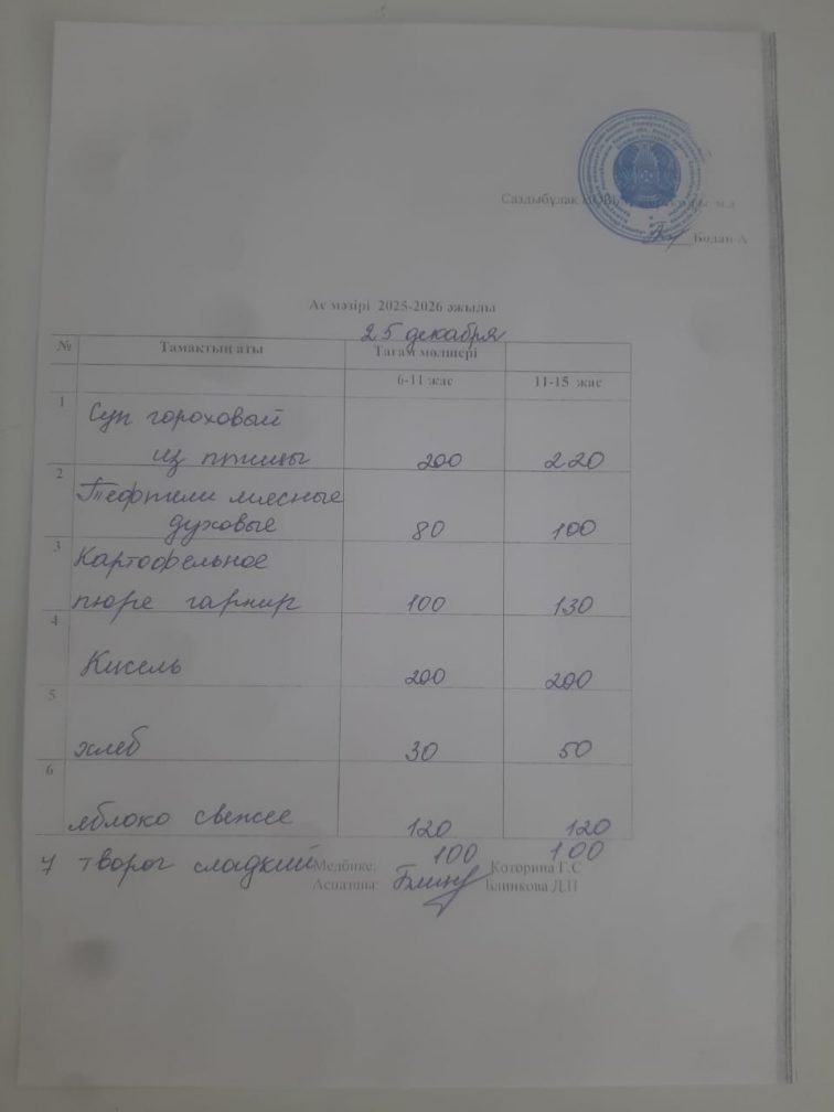 Меню на 25.12.2025