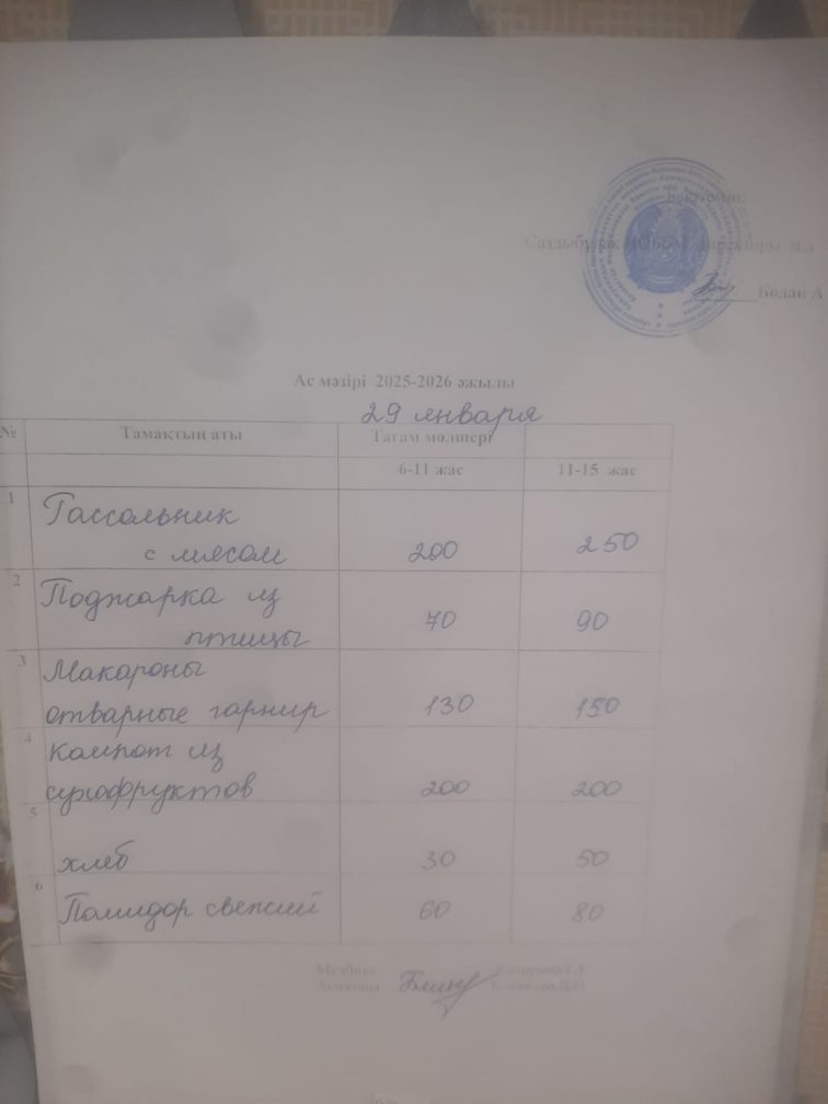 Меню на 29.01.2026