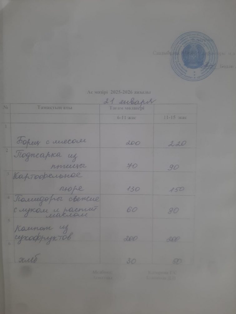 Ас мәзірі 21.01.2026
